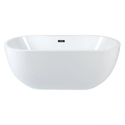 General description Add a touch of contemporary style to your bathroom with the Milano Overton double ended freestanding oval bath. Made from premium quality acrylic, this bath features a hard-wearing coating that resists stains and scuffs, providing a luxurious and comfortable bathing experience at either end thanks to its generous capacity. Technical specifications Acrylic construction with hard-wearing coating Dimensions: 1800mm x 750mm x 580mm Capacity: 225 litres Compatibility and accessories Compatible with freestanding or wall-mounted taps Includes a white push button waste, matte black overflow, and pipe Installation Height adjustable legs for easy levelling on uneven floors No tap-holes, ideal for use with a wall-mounted or freestanding bath tap Usage Designed for luxurious bathing Other information This product is covered for 10 years
