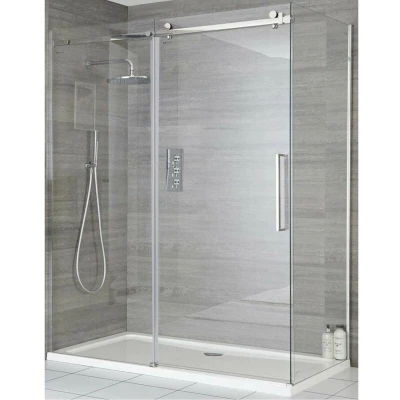 Milano Portland 1200mm Chrome Reversible Wet Room Frameless Shower Enclosure Sliding Door With 800mm Side Panel