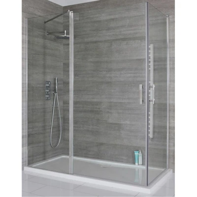 AmazonToughened glass and aluminium construction Includes 1000mm and 900mm hinged shower doors, 400mm fixed inline panel and 1400mm x 900mm white tray Hard-wearing polished aluminium finish Hinged doors allow easy entry to the enclosure Acrylic capped polymer resin tray with fast flow waste Height of 1950mm to catch more splashes, Weight: 0.551155655 pounds, Manufacturer: Milano