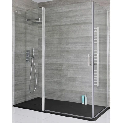 General description Enhance your showering comfort and add a touch of contemporary style to your bathroom with the reversible Milano Portland corner shower enclosure. This enclosure features a pair of hinged shower doors, a fixed inline panel, and a textured graphite slate effect shower tray, providing both functionality and aesthetic appeal. Technical specifications Dimensions: 1500mm x 800mm Height of doors: 1950mm Tray height: 30mm Glass thickness: 6mm toughened safety glass Entry width: 1014mm Other information Manufactured to EN14428 and EN12150-2 standards This product is covered for 10 years