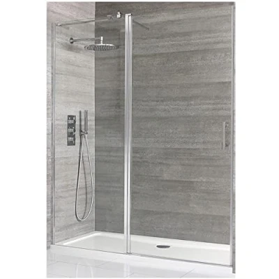 AmazonToughened glass and aluminium construction Includes 900mm hinged shower door, 700mm fixed inline panel and 1600mm x 760mm white tray Hard-wearing polished aluminium finish Hinged door allows easy access to your enclosure Acrylic capped polymer resin tray with fast flow waste Height of 1950mm to catch more splashes, Weight: 0.551155655 pounds, Manufacturer: Milano