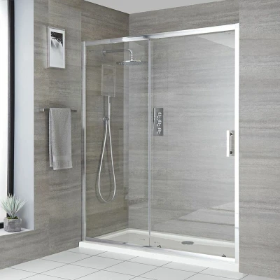Milano Portland Chrome Reversible Sliding Door Shower Enclosure White Tray 1700mm x 800mm