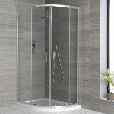 General description Make the most of the space in your bathroom with the contemporary Milano Portland right hand quadrant shower enclosure. It includes a white acrylic capped polymer resin tray with fast flow waste to efficiently drain away the water. Technical specifications Dimensions: 900mm x 760mm x 1850mm Door entry width: 441mm Enclosure radius: 550mm Glass thickness: 6mm toughened safety glass Construction: Polished aluminium profile with matching handles Other information Features double rollers at the top and bottom for smooth operation of the sliding door Magnetic seal for secure and watertight closure Certified to EN14428 and EN12150-2 standards This product is covered for 10 years