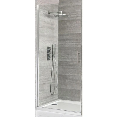 Milano Portland Chrome Walk In Wet Room Hinged Door Shower Enclosure and White Tray with Fast Flow Waste 1100mm x 700mm