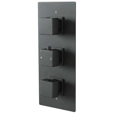 Milano Preto 2 Outlet Triple Thermostatic Concealed Mixer Shower Valve Black