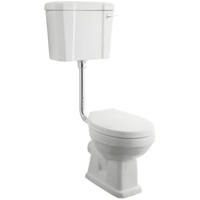 Enhance the traditional look of your bathroom with the Milano Richmond low level toilet which includes a low level cistern with a chrome flush pipe and a chrome and ceramic flush handle. The classic look benefits from smooth curves and soft lines to give an elegant timeless finish. Complemented perfectly by a white engineered wood seat the toilet benefits from premium quality ceramic construction and an easy to clean white glaze that ensures durability for years to come. - Ceramic construction with hard-wearing white coating - Traditional design to create a classic look - Low level cistern with chrome flush pipe and chrome and ceramic flush handle - Moisture resistant engineered wood seat with white finish - Includes a pan fixing kit to aid installation - This product is covered for 10 years - Dimensions: 360mm x 495mm x 395mm (pan) Please note: You will need a pan connector.