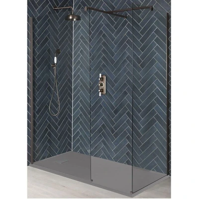 Enhance the stylish look of your bathroom with the modern Milano Rosso corner walk-in shower enclosure which comprises two glass screens and a textured light grey slate effect shower tray. Benefitting from 8mm toughened safety glass construction and a height of 1950mm to contain more splashes from your shower the screens are accentuated by contemporary premium quality matte bronze profiles and matching support arms. The reversible design allows you to install it perfectly in the corner of your bathroom to enable left or right entry. Completing the stylish and minimalist effect is the low profile shower tray which can be fitted on or level with the floor to enable easy access and includes a fast flow waste to efficiently drain away the water whilst showering. - Matte bronze corner walk-in shower enclosure - 8mm toughened safety glass and aluminium construction - Designed for installation in the corner of a bathroom - Reversible design to allow left or right hand entry - 1950mm high