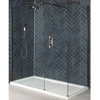 Enhance the stylish look of your bathroom with the modern Milano Rosso corner walk-in shower enclosure which comprises two glass screens and a white shower tray. Benefitting from 8mm toughened safety glass construction and a height of 1950mm to contain more splashes from your shower the screens are accentuated by contemporary premium quality matte bronze profiles and matching support arms. The reversible design allows you to install it perfectly in the corner of your bathroom to enable left or right entry. Completing the stylish and minimalist effect is the shower tray which enables easy access to the enclosure and includes a fast flow waste to efficiently drain away the water whilst showering. - Matte bronze corner walk-in shower enclosure - 8mm toughened safety glass and aluminium construction - Designed for installation in the corner of a bathroom - Reversible design to allow left or right hand entry - 1950mm high panels catch more shower splashes - Acrylic capped polymer resin