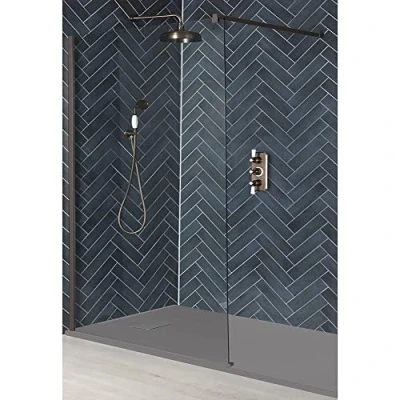 Add a touch of contemporary style to your bathroom with the Milano Rosso recessed walk-in shower enclosure which consists of a glass screen and textured light grey slate effect shower tray. Accentuated by a modern matte bronze profile and matching support arm the screen is made from premium quality 8mm toughened safety glass with a height of 1950mm to catch more shower splashes. Thanks to a reversible design the enclosure can be fitted into a recess in your bathroom to allow entry from the left or right. The low profile shower tray which includes a fast flow waste to efficiently clear the water when showering can be fitted on or level with the floor to enable easy access as well as giving a minimalist look. - Matte bronze walk-in shower enclosure - 8mm toughened safety glass and aluminium construction - Designed for installation in the recessed bathroom area - Reversible design to allow left or right hand entry - 1950mm high panels catch more shower splashes - Light grey slate effect