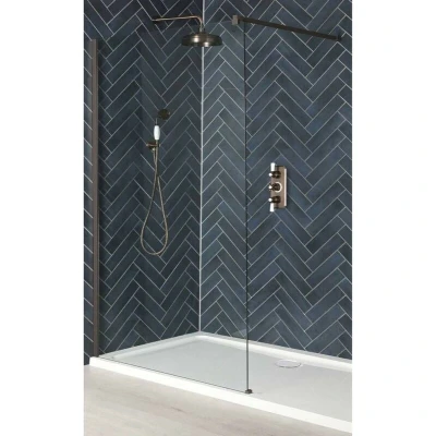 Add a touch of contemporary style to your bathroom with the Milano Rosso recessed walk-in shower enclosure which consists of a glass screen and white shower tray. Accentuated by a modern matte bronze profile and matching support arm the screen is made from premium quality 8mm toughened safety glass with a height of 1950mm to catch more shower splashes. Thanks to a reversible design the enclosure can be fitted into a recess in your bathroom to allow entry from the left or right. The shower tray which includes a fast flow waste to efficiently clear the water when showering enables easy access as well as giving a smart and minimalist look. - Matte bronze walk-in shower enclosure - 8mm toughened safety glass and aluminium construction - Designed for installation in the recessed bathroom area - Reversible design to allow left or right hand entry - 1950mm high panels catch more shower splashes - Acrylic capped polymer resin tray with fast flow waste - Manufactured to meet EN14428 standard