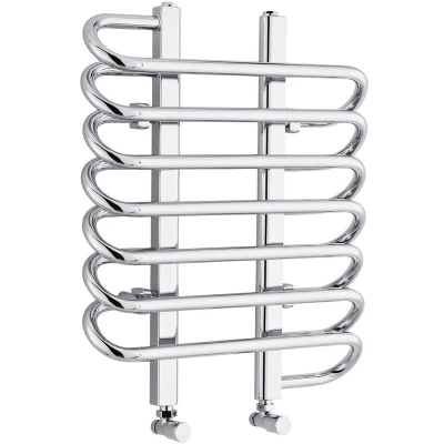 General description Keep your towels tidy and perfectly warmed with the modern Milano Select curved ladder style heated towel rail. Made from premium quality steel and finished in contemporary chrome, this towel rail not only serves a functional purpose but also enhances the aesthetic of your bathroom. With an impressive heat output, your towels will always feel cozy and ready for use. Technical specifications Dimensions: 610mm x 500mm x 96mm Heat output: 792 BTUs / 232 Watts (T50); 408 BTUs / 119 Watts (T30) Construction material: Steel Finish: Chrome Tested and certified to BS EN 442 standard ISO9001:2015 registered manufacturer Compatibility and accessories Radiator valves are required (not included) Includes blanking and bleed plug plus fixings Other information This product is covered for 10 years