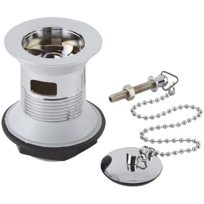 AmazonSlotted bathroom basin waste with plug and ball chain Stainless steel construction with chrome finish Dimensions: 60mm x 85mm Suitable for basins fitted with an overflow and chain stay hole Suitable for use with any style of decor, Weight: 0.4188782978 Pounds, Manufacturer: Milano