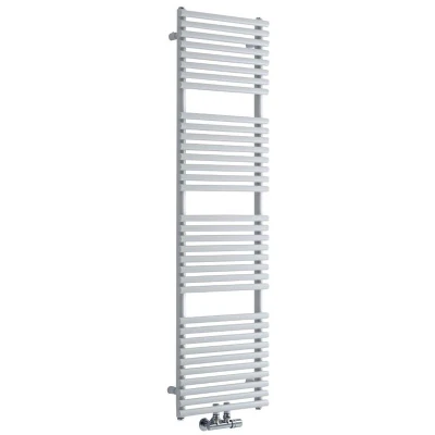 General description Keep your towels tidy and perfectly warmed with the modern Milano Via middle connection bar on bar heated towel rail. Made from premium quality steel and finished with a contemporary white powder coating, this towel rail ensures your towels are always cosy and ready for use. Technical specifications Dimensions: 1520mm x 400mm x 58mm Heat output: 1058 BTUs / 310 Watts (T50); 490 BTUs / 144 Watts (T30) Construction material: Steel Finish: White powder coated Tested and certified to BS EN 442 standard ISO9001:2015 registered manufacturer Compatibility and accessories Requires radiator valves (not included) Other information Includes blanking and bleed plug plus fixings This product is covered for 10 years