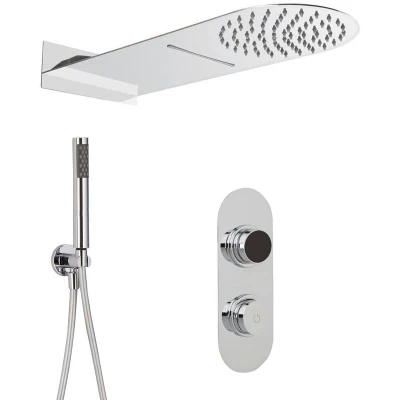 Milano Vis Digital Three Outlet Thermostatic Shower with 200mm x 500mm Rainfall Head Waterblade Function and Hand Handset Chrome
