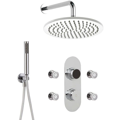 Milano Vis Digital Three Outlet Thermostatic Shower with 300mm Wall Mounted Round Rainfall Head Hand Handset and Body Jets Chrome