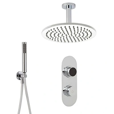 AmazonConcealed digital thermostatic shower control with ceiling-mounted 300mm round rainfall shower head and hand shower kit Stainless steel and solid brass construction with chrome finish and ceramic disc technology to prevent drips Push button on/off operation and simple control with colour-changing temperature indication Compatible with all types of plumbing system A recessed area is required in the wall or ceiling to fit the digital control box, Weight: 12.8529498746 pounds, Manufacturer: Milano