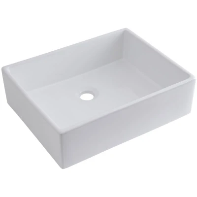 AmazonRectangular countertop bathroom basin for use on a worktop or vanity unit Ceramic construction with hard-wearing white finish Dimensions: 490mm x 390mm x 145mm The basin is not fitted with any tap-holes You will need a wall-mounted or high-rise tap, unslotted or universal waste and bottle trap, Weight: 34.8109911698 pounds, Manufacturer: Milano