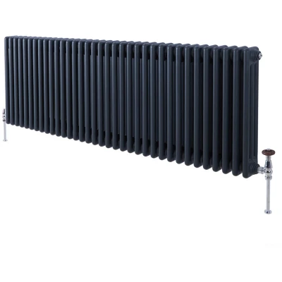 General description The Milano Windsor Anthracite Cast Iron Style Triple Column Horizontal Radiator combines traditional styling with modern functionality. Its anthracite finish and cast iron style design create a timeless effect, making it a perfect addition to any home. Technical specifications Material: Premium quality steel Dimensions: 600mm x 1595mm x 100mm Heat output: 6435 BTUs / 1886 Watts (T50); 3286 BTUs / 963 Watts Tested and certified to BS EN 442 standard ISO9001:2015 registered manufacturer Compatibility and accessories Includes blanking and bleed plug Includes fixings Other information This product is covered for 20 years