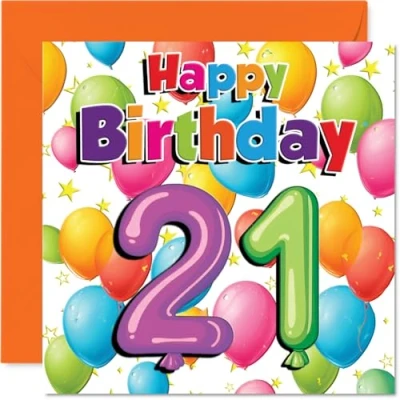 Milestone 21st Birthday Card Bursting with Cheer Colourful Balloons and Stars Design A Vibrant Way to Mark Their Big 2 1 145mm Square, Envelope Included