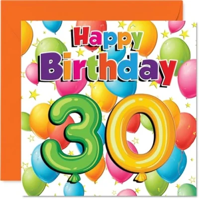 Milestone 30th Birthday Card Bursting with Cheer Colourful Balloons and Stars for a Vibrant Celebration 145mm Square, Envelope Included