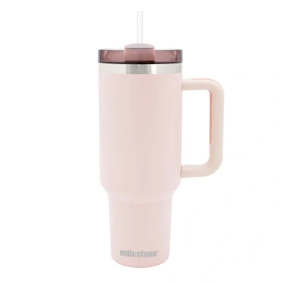 Milestone 40oz Tumbler with Straw, Handle & Lid/Large Capacity Insulated Stainless Steel Travel Mug for Cold or Hot Drinks (Pink)
