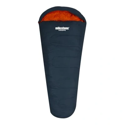 SINGLE MUMMY SLEEPING BAG – This single mummy sleeping bag is perfect for you to take on camping trips and a great size for everyone in your family. It features a drawstring hood to insulate against cold weather and has a double-sided zipper, so it is easy to get in and out. It includes a magic sticker to secure the neckline and prevent the zipper from slipping so you can stay snug all night. COMFORTABLE AND PORTABLE - This double layered sleeping bag has a great 150/m2 hollow fibre lining with a 170T Polyester shell to keep you warm and cosy on cold nights. The sleeping bag is lightweight and portable, so you can take it on all your adventures. CARRY SACK – The sleeping bag comes in a handy drawstring carry sack which reduces the volume of your sleeping bag, so you can easily stuff it in your backpack without eating up too much space. 2 SEASON - With 2 season insulation, this sleeping bag is ideal for use in late spring to early autumn for your typical camping or festival trip and best suited for temperatures between 0-27 degrees. The sleeping bag is also water resistant to protect against damp weather. MILESTONE CAMPING – Milestone Camping is the leading manufacturer of everything you need to enjoy the great outdoors. Visit the Milestone Camping page on Amazon to view the whole range today.