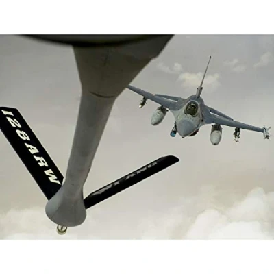 Military Belgium F 16 Fighting Falcon Refuelling Photo Premium Wall Art Canvas Print 18X24 Inch