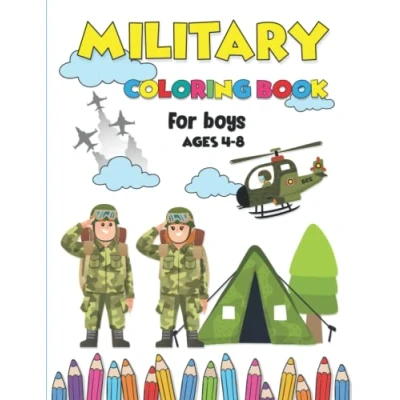 Military Coloring Book for boys ages 4 8: Army Kids 8, 6 12. Tanks, Helicopters, Soldiers, Guns, Navy, Planes, Ships, and more Activity Kids.