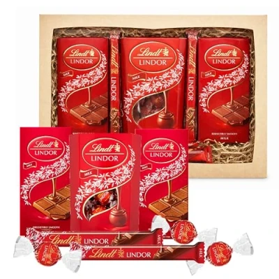 Delight your loved ones with our luxurious Lindt Lindor Milk Chocolate Hamper, a carefully curated selection of premium chocolates that promises to bring joy and indulgence. This delightful gift set includes a variety of smooth and creamy milk chocolates, perfect for celebrating special moments or simply showing someone you care. What's Inside: 200g smooth Lindt truffles - indulge in the creamy richness of our premium milk chocolate truffles. Each bite is a symphony of smooth, velvety textures that melt in your mouth. 2 x 100g Milk Chocolate Bars - enjoy the classic taste of our exquisite milk chocolate bars. Perfect for sharing or savouring alone, these bars are crafted with the finest ingredients for a delightful chocolate experience. 2 x 38g Treat Bars - conveniently sized for a quick chocolate fix, these treat bars are great for on-the-go indulgence. Lindt Milk Chocolate Hamper, a delightful collection of premium milk chocolates that promises to bring joy to any celebration. Whether you're looking for the perfect birthday gifts for women, or a thoughtful present for Fathers day, Dad birthday gifts, a sweet surprise for Mum, or a romantic treat for couples, this exquisite hamper is sure to impress. This milk chocolate assortment is not just a gift, it's an experience. Each bite is a journey into the world of premium chocolate, crafted with care to provide a moment of pure bliss. Whether you're gifting it to a friend, a parent, or a partner, this sweets hamper is a thoughtful way to show you care. Perfect for anniversaries, date nights, or just because, this hamper is designed to be enjoyed together.