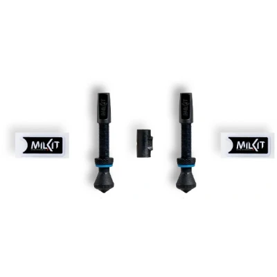 milKit simplifies the maintenance of tubeless tires. The advantages: The tire stays on, the air in and the hands clean. With the milKit system, tubeless tires can be mounted dry on the rim and the sealing milk filled into the inflated tire - quickly and without mess. The smart rubber flaps at the bottom of the milKit valves ensure that the valves no longer clog.A milKit Valve Pack consists of two valves and a valve tool. The valves are compatible with all common tires and rims. Available in 4 different valve lengths.2 x patented tubeless valves with rubber flaps1 x valve heart tool2 x rim stickers