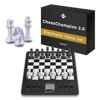 Perfect for beginners and advanced players: The ChessChampion 2.0 offers automatic game level adjustment and interactive learning functions with which children and adults can systematically improve their chess game. Chess training with interactive tips: The computer gives hints about bad moves, suggests alternatives and shows legal moves. This helps beginners to avoid mistakes and develop tactical skills. Exercises and mini-games for a better understanding: With 100 exercises and special mini-games with reduced material, beginners quickly learn strategic basics and improve their game step by step. Color display for intuitive operation: The clear, illuminated color display clearly shows moves and recommendations. The high-quality pressure sensor chessboard with Millennium HighSensity technology precisely recognizes every move input. Compact design for flexible use: Thanks to its handy size, magnetic pieces and storage bag, the chess computer is ideal for at home, when traveling or as a companion for learning and playing sessions on the go., Manufacturer: Millennium
