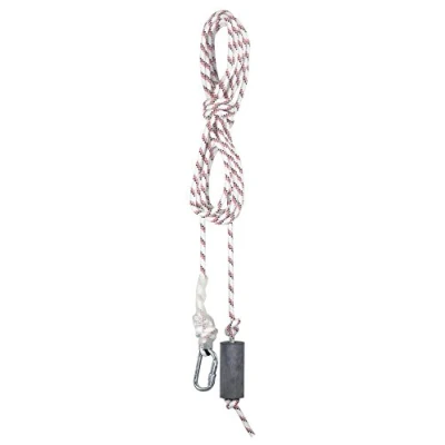 Anchorage support static braided rope 10.5mm with karabiner CS20 and counterweight. Can be supplied with different length, with or without karabiner towards a special order. Length: 15M, 10.5 mm Static braided rope material: Polyamide 10.5mm Static braided rope strength: >2750 daN Screwgate karabiner CS20: Galvanized connector, 18mm opening, >2500 daN breaking strength Counterweight: Made of rubber, 0.5 kg weight