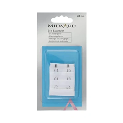 Useful for adding temporary additional size allowing for pregnancy, breastfeeding, weight gaining, bra shrinkage and more. These bra extenders are the perfect solution for adding more extra room for new bras that are too tight and can become sore. Easily fits onto current bra fasteners by traditonal hook and eye, complete with an elastic stretch panel which provided flexibilty within adding size to the over band width of the bra. Suitable for washing at 40 degrees centigrade and a cool tumble dry. Cool iron only. Do not bleach or dryclean. The MILWARD brand is owned and distributed by a UK seller, a highly reputable family owned craft and sewing business with over 50+ years of experience within the crafting, sewing and knitting sector.