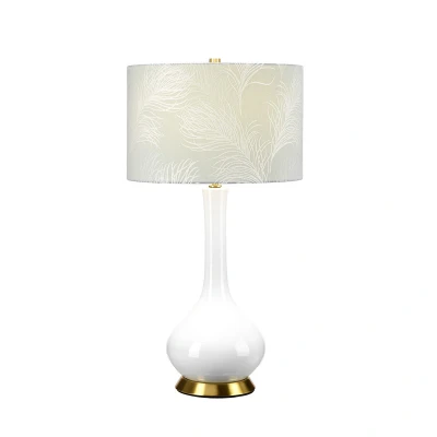 Milo Table Lamp with Round Shade, Aged Brass, White, Blue
