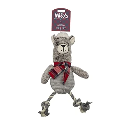 Christmas Theme - Festive alpaca design brings seasonal fun to your dog's toy collection. Soft Plush Material - Gentle and cuddly, perfect for play, comfort and bedtime snuggles. Rope Legs for Chewing - Durable cotton rope legs support dental health and are great for tugging. Lightweight & Portable - Easy to throw, carry, and take on the go for interactive play anywhere. Ideal for All Dogs - Suitable for puppies and adult dogs - great for fetch, chewing or cuddling.