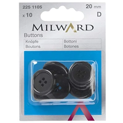 This pack of 10 large jacket buttons are ideal for replacement on current garments, adding to new clothing pieces or as decorative additions. Each large 20mm button has a traditional and decorative ring edge and a four hole centre, providing a secure, reliable and hard wearing fastening. These buttons are made from a high quality durable plastic which has been designed to be resistant from wear even with frequent washing. The traditional style is retro and cute, making your clothing garments fun and interesting, suitable for shirts, blouses, tops, overalls, pinafores, tabbards, aprons, hats, bags, purses and so much more! The MILWARD brand is owned and distributed by a UK seller, a highly reputable family owned craft and sewing business with over 50+ years of experience within the crafting, sewing and knitting sector.