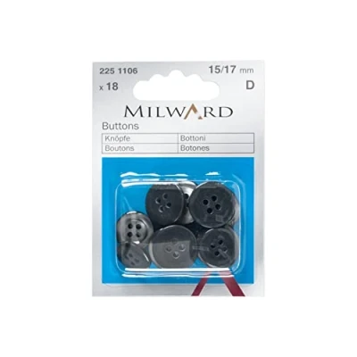 This pack of 18 trouser/skirt buttons in two sizes are ideal for replacement on current garments, adding to new clothing pieces or as decorative additions. The 15mm & 17mm buttons have a traditional and decorative flat ring edge and a four hole centre, providing a secure, reliable and hard wearing fastening. These buttons are made from a high quality durable plastic which has been designed to be resistant from wear even with frequent washing. The traditional style is suitable for most clothes in a grey marl effect, suitable for shirts, blouses, tops, overalls, pinafores, tabbards, aprons, hats, bags, purses and so much more! The MILWARD brand is owned and distributed by a UK seller, a highly reputable family owned craft and sewing business with over 50+ years of experience within the crafting, sewing and knitting sector.