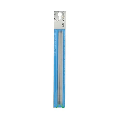 Milward Double Point Knitting Needles, Set of Five, 20cm, aluminium, Silver Grey, 2,5 mm