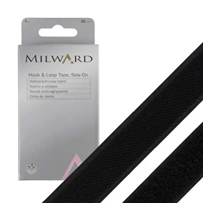 MILWARD hook and loop tapes are perfect for securing items out of the way and staying organised around the home, office and in crafting. Pack includes 1 metre of 20mm wide sew on hook and loop tape. Attach to create very quick and strong fastening to garments, clothing, accessories such as bags and jackets or overalls. Easy to attach to sewing projects by simpley sewing on using a machine or by hand. garments, clothing, accessories such as bags and jackets or overalls. The MILWARD brand is owned and distributed by a UK seller, a highly reputable family owned craft and sewing business with over 50+ years of experience within the crafting, sewing and knitting sector.