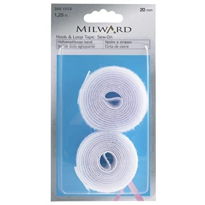 MILWARD hook and loop tapes are perfect for securing items out of the way and staying organised around the home, office and in crafting. Pack includes 1.25 metres of 20mm wide sew on hook and loop tape. Attach to create very quick and strong fastening to garments, clothing, accessories such as bags and jackets or overalls. Easy to attach to sewing projects by simpley sewing on using a machine or by hand. garments, clothing, accessories such as bags and jackets or overalls. The MILWARD brand is owned and distributed by a UK seller, a highly reputable family owned craft and sewing business with over 50+ years of experience within the crafting, sewing and knitting sector.