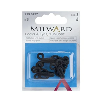 MILWARD Hooks & Eyes Fasteners, Fur/Coat, Black, No.3