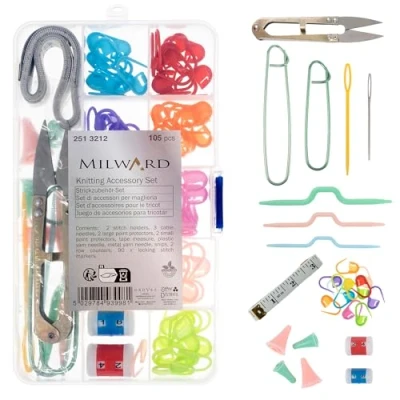 All-in-One Knitting Essentials: This Milward Knitting Accessory Set includes everything you need, from stitch holders to snips, all neatly packed in a compact, reusable storage box with compartments. Convenient & Portable: Keep your knitting tools organized and ready to go with this compact, lightweight storage box. Fits easily into any craft bag, making it perfect for on-the-go knitting projects. Quality & Durability: Featuring durable metal and plastic tools, including yarn needles and locking stitch markers, this kit ensures you have reliable tools at your fingertips for any knitting task. Stay Organized: With dedicated compartments and a secure, resealable clip lid, this set keeps all your knitting accessories neatly arranged and easily accessible whenever you need them. Perfect Gift for Knitters: Ideal for beginners and experienced knitters alike, this versatile accessory set makes an excellent gift, providing all the essentials to support any knitting project.