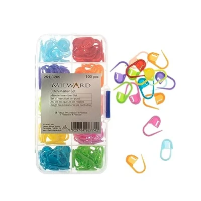 Milward Knitting Stitch Marker Set 100 Piece & Crochet Essential Tool Kit Pocket Travel Size Reusable Box