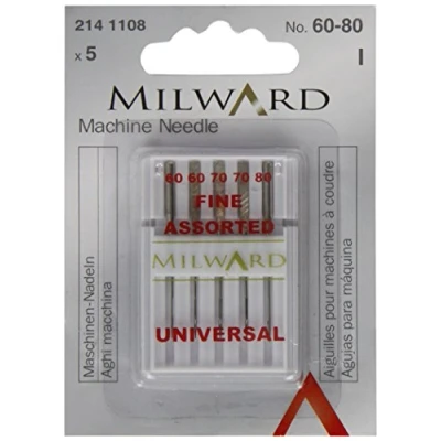 Milward Universal Sewing Machine Needles, Silver, 60/8, 70/10, 80/12