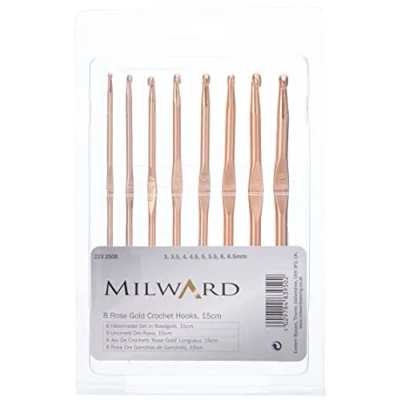 [8 Most Popular Sizes] Each set includes the most popular 15cm crochet hook sizes 3.00, 3.5, 4.00, 4.50, 5.00, 5.50, 6.00 and 6.50mm. Each hook has size markings on the handle for easy identification. [Ergonomic] The lightweight hooks have a thumb groove making them comfortable in the hand and great for long periods of use. [Versatile] Use Milward crochet hook to make blankets, hats, socks, gifts, bags and so much more! [High Quality] The hooks are made of premium quality aluminium making them durable and the smooth rose gold finish makes the hooks snag free. [Milward Quality] From a UK Seller, The Milward brand is owned and distributed by a UK seller, from a highly reputable family-owned craft and sewing business with over 50+ years of experience within the crafting, sewing and knitting sector.