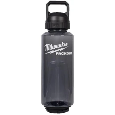 Milwaukee PACKOUT Plastic Bottle with Chug Lid - black / 1420ml Twist and lock mechanism for connectivity with all PACKOUT components. Part of the PACKOUT modular storage system. Leak-resistant chug lid for easy drinking 740ml capacity – ideal for all-day hydration Ergonomic design for comfortable grip Bold Milwaukee red color with logo branding