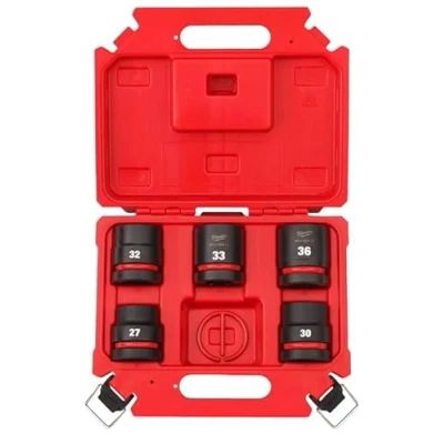 3/4" Socket Set: Sizes 27-36mm Impact-Duty Chrome-Molybdenum Steel: Durable & Strong Hex Geometry: Prevents Socket & Fastener Rounding Six Gripping Points: Secure Socket Fit Deep Wall Design: Clears Protruding Bolts Stamped & Ink-Filled Markings: Wear-Resistant Sizes Socket Rail: Organized & Together as a Set, Manufacturer: Milwaukee
