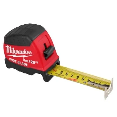 Milwaukee 4932499206 GEN II Wide Blade Tape Measure 8m/26ft Longest Standout: Measure distances in the air of up to 5 m. Straightest Standout for more precise measurement of long distances in the air. Finger-Stop feature for quick, controlled retraction of the blade. ImprovedDouble-Sided printing with vertical and horizontal scale for versatile measurements. blade durability with Double-Sided Anti-Tear coating for the first 15 cm of the blade. Long-lasting blade with full nylon extrusion coating. Impact resistant body for the toughest conditions on the job site. Double-Sided printing with vertical and horizontal scale for versatile measurements. Architectural scale to measure scaled drawings, such as blueprints.