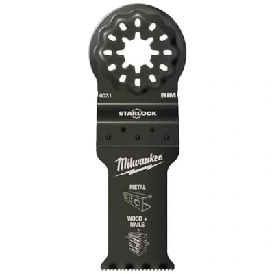 Milwaukee 28mm Plunge Multi-Material StarLock Multi-Tool Blades STARLOCK universal blade reception makes Milwaukee blades compatible with the most popular oscillating tools. Starlock : no components or adaptors required, fast blade changes & 100% power transmission from tool to accessory. Multi material 28mm plunge cut bi-metal blade for long life. The Milwaukee STARLOCK multi-tool blades are designed for quick blade changes for both OIS multi tools and STARLOCK multi-tools. These bi-metal blades are ideal for cutting thin metal, copper, fibreglass and PVC. The MILWAUKEE Bi-Metal metal multi-tool blades designed with a wavy tooth pattern to reduce the strain on the individual teeth of the blade, whilst also featuring an ultra-thin cutting line to provide fast smooth cuts in non-ferrous metal., Manufacturer: MILWAUKEE ACCESORIOS