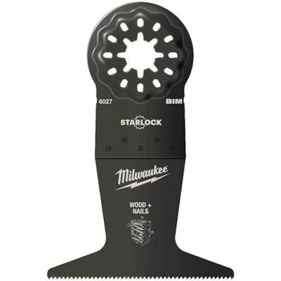 Milwaukee 65mm Plunge Wood with Nails StarLock Multi-Tool Blades STARLOCK universal blade reception makes Milwaukee blades compatible with the most popular oscillating tools. Starlock : no components or adaptors required, fast blade changes & 100% power transmission from tool to accessory. Wood with nails 65mm plunge cut bi-metal blade for long life. The Milwaukee STARLOCK multi-tool blades are designed for quick blade changes for both OIS multi tools and STARLOCK multi-tools. These bi-metal blades are ideal for cuts in wood with nails, copper pipe, wood and PVC. The MILWAUKEE bi-metal multi-tool blades designed with a wavy tooth pattern to reduce the strain on the individual teeth of the blade, whilst also featuring an alternating tooth pattern making this the ideal blade for fast and smooth cuts in nail embedded wood., Manufacturer: milwaukee